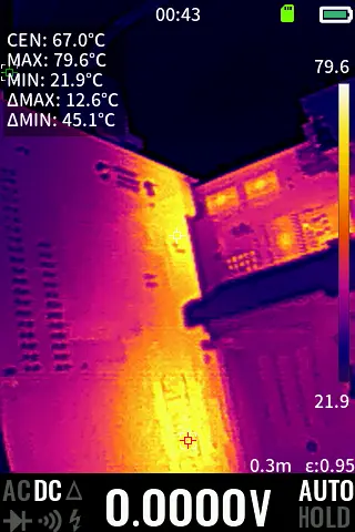 * przed modami sprawdze jeszcze tempy na gpu i vregu, podsmaruje stary radiatorek pasta gd900 alby lepiej chlodzil i glquake 640x480x16, kilka minut odczekania i pomiar kamera ir, bedzie to bazowa temperatura abysmy wiedzieli na czym sie stoi i jakie zmiany zaszly po modach