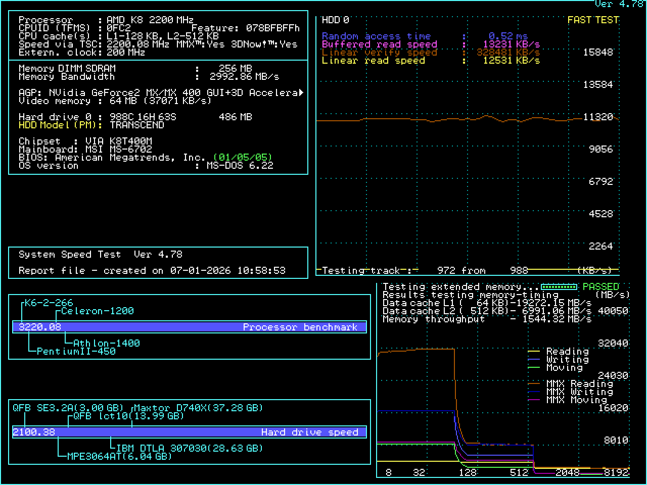 * zrobione dodatkowe testy pamieci w speedsys, jest roznica na plus, dodatkowe testy z dosbench zaliczone, platforma gotowa