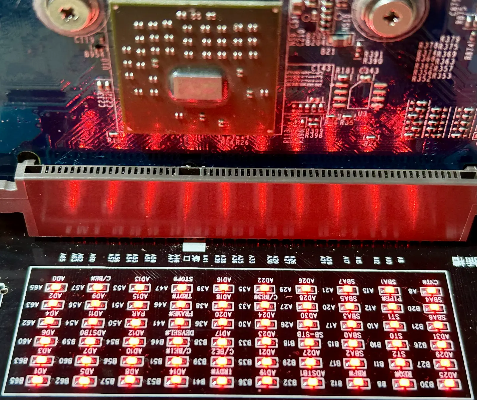 * na koniec sprawdzilem jeszcze 2 karty testerem, one czekaja na naprawe od dluzszego czasu, sa to gforce 6600GT i radeon 4650, obie maja zlacze agp 4x i sb, na testerze pala sie wszystkie ledy wiec wydaje sie ze polaczenie portu z gpu jest ale... one maja dodatkowe mostki agp-pcie wiec tester pokaze tylko polaczenie z mostkiem, a czy mostek ma polaczenie z gpu to juz inna bajka
